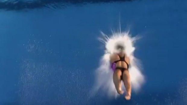 Россиянка Юлия Тимошинина опозорилась во время прыжка с 10-метровой вышки. Она завалила свой прыжок, больно упав в воду на живот. За прыжок спортсменка получила рекордно низкие 14 баллов.